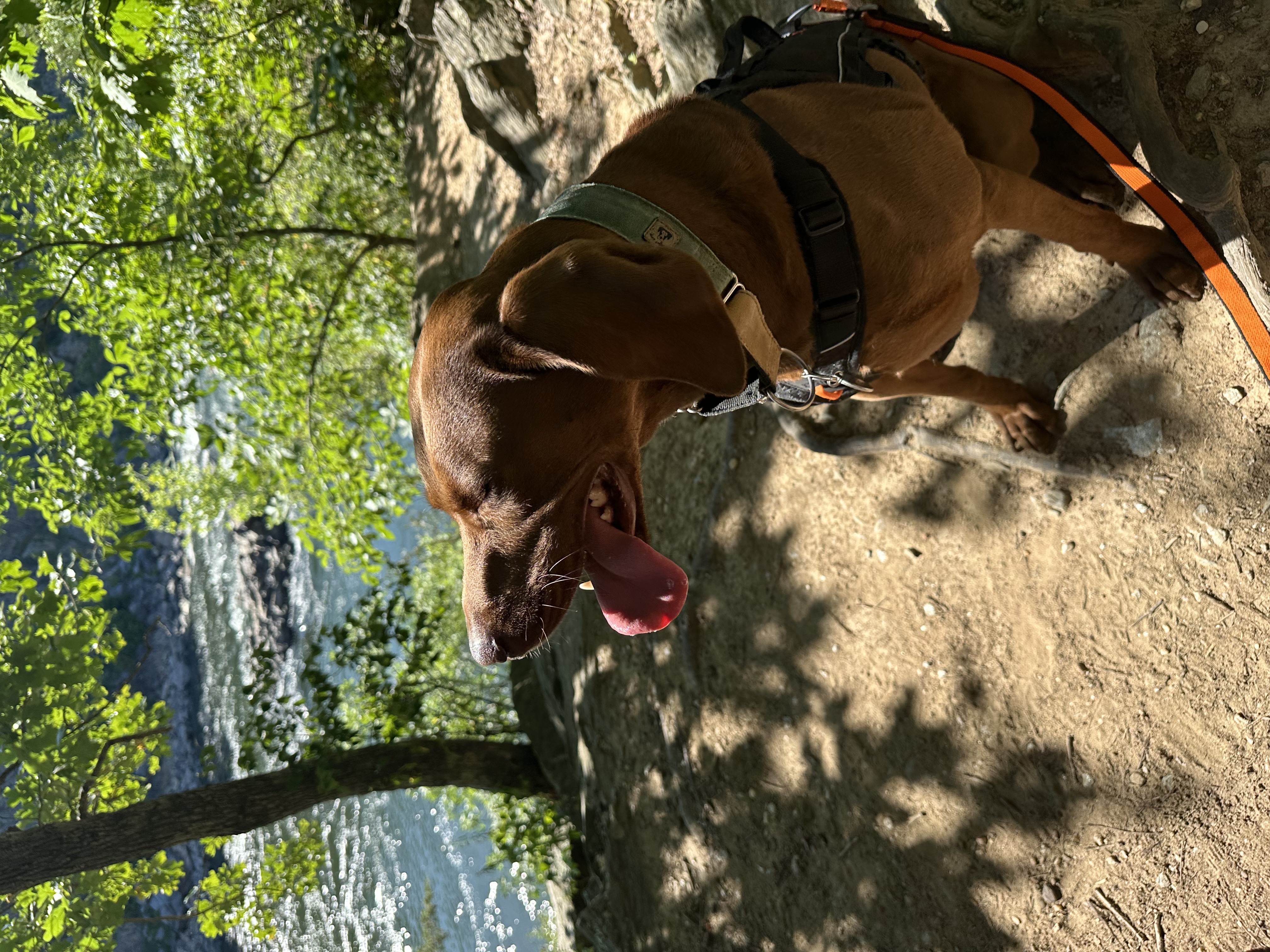 Great Falls National Park. Andrea and I spent a long, fun day in the Great Falls area, starting early with Great Falls National Park. We did their river loop trail, which was a fun challenge since we have recently started hiking. This was the first time she, Moose, or I have encountered any rock scrambles on our hikes. It was fun, but there were a few moments where I thought that Moose was going to pull me off the side of the cliff and into the Potomac down below. We wrapped up our hike by stopping at a local brewery (with local farm to table meals) and had the best burgers we’ve had in a while.
